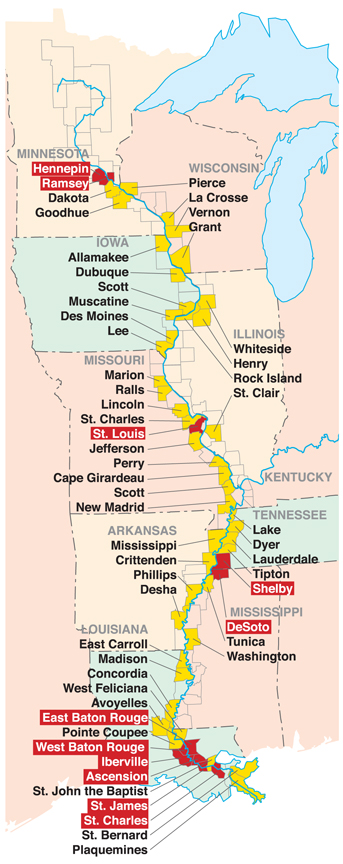 Mississippi river map .
